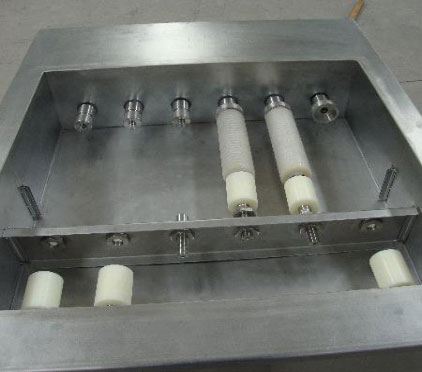 制药生产企业或化工生产企业,水过滤、空气过滤、或其它过滤用过的滤芯、钛棒、不锈钢泵、镍棒,一般只是人工在自来水上冲洗一下,就再次去使用,这种清洗出来的滤芯或钛棒过滤效果远远达不到使用要求,我公司制作的超声波滤芯清洗机是采用,内冲外洗的方式对滤芯或钛清洗,内冲——在滤芯或钛棒内部通上带有压力的水和压缩空气,外洗——超声波对滤芯或钛棒的外部或空隙进行超声波清洗。超声波把粘结在滤芯或钛棒上的污渍和水垢打松动以后,内冲的冲洗水和压缩空气再冲洗出来,效果干净彻底。